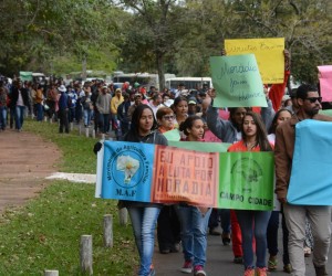 Aproximadamente 350 pessoas que vivem no terreno onde deveriam ter sido construídos três mil apartamentos da construtora Homex, no bairro Paulo Coelho Machado, em Campo Grande, se reuniram de forma pacífica em protesto na manhã desta terça-feira, em frente ao prédio da governadoria, no Parque dos Poderes. O grupo, que chegou em comboio com seis ônibus, busca apoio para regularização das famílias e construção de casas populares.