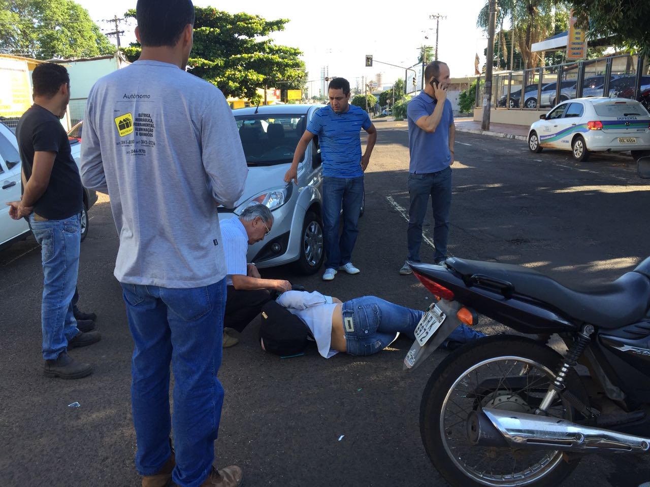 Acidente entre carro e moto deixou motociclista levemente ferida, na manhã desta segunda-feira, na Rua João Pedro de Souza, na Vila Santa Dorotheia, na Capital.
