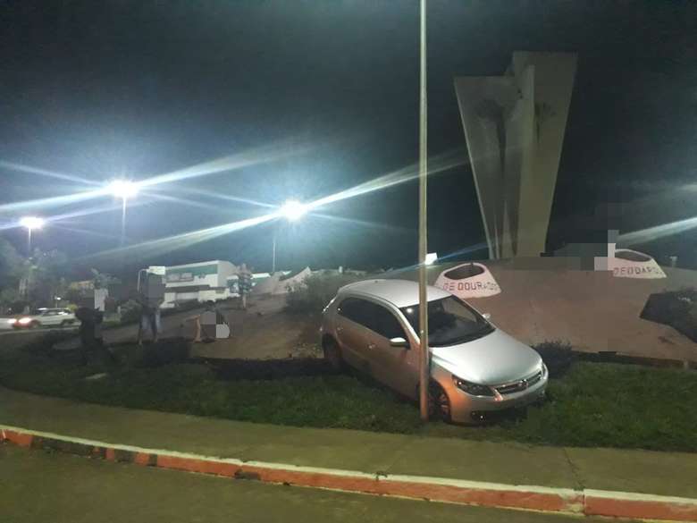 Motorista de 36 anos foi preso na noite de quinta-feira (21) em Dourados após perder o controle de direção do VW Gol em que estava e ‘atropelar’ o Monumento ao Colono, na Avenida Marcelino Pires.