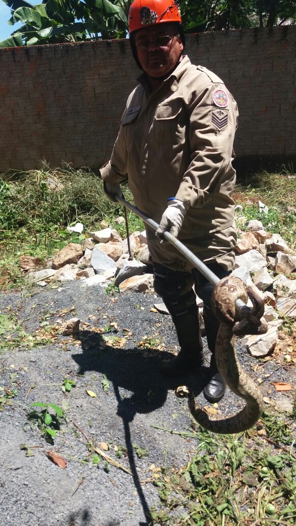 Equipe de resgate fez a contenção e capturou o animal que tem aproximadamente 1 metro e meio de comprimento. Em seguida, a jiboia foi solta em área distante para voltar ao habitat.