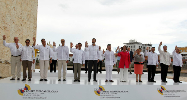 O prêmio Nobel da Paz, recém-entregue ao presidente colombiano Juan Manuel Santos, e estímulos para que a nova etapa das negociações com as guerrilhas continuem deram o tom do encontro de presidentes neste sábado (29), na Cúpula Iberoamericana, que se realiza em Cartagena, na Colômbia.