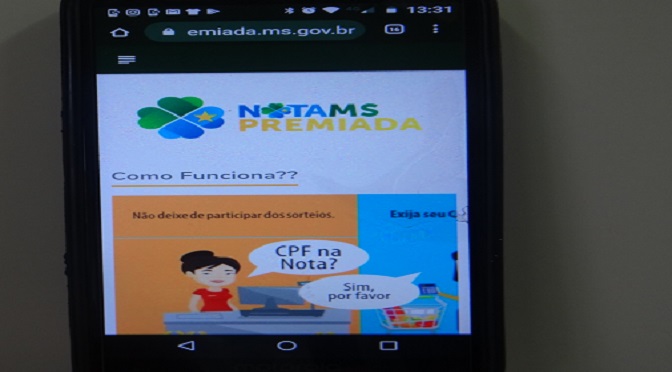 Já pelo celular IOS (Iphone), o usuário terá de acessar o Google ou o Safari (de preferência). Depois, o consumidor terá de digitar notamspremiada.ms.gov.br ou “nota ms premiada”. Dentre as opções encontradas aparecerá o link www.notamspremiada.ms.gov.br. Clique nessa opção. Depois, será aberto um app Nota MS Premiada. No rodapé da tela do celular aparecerá um ícone (um quadrado com uma seta apontando para cima). Clique nele. Depois, aparecerá opções no rodapé: lista de leitura, adicionar favorito, etc. Encontre a opção “Tela de início”, que tem um desenho de um quadrado com um sinal de “ +” dentro do quadrado. Clique nessa opção. Em seguida, aparecerá um outro quadro com o seguinte aviso: “adicionar à tela inicial”. Clique no botão “adicionar”, aguarde alguns instantes, e pesquise se o ícone da Nota MS Premiada já foi baixado. Quando encontrá-lo, clique e consulte, pelo seu CPF, as dezenas geradas. “ O ícone facilita e muito, porque já te leva direto para a página www.notamspremiada.ms.gov.br, afirma o chefe da Unidade de Educação Fiscal, Amarildo Cruz.