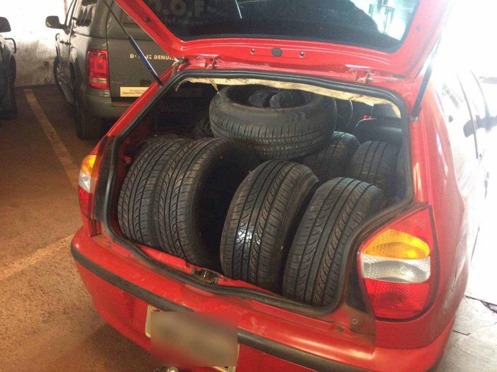 Os dois veículos Fiat Palio e Parati prata foram abordados pelos policiais no centro da cidade e foi encontrados um total de 150 pneus nos dois carros. Além dos pneus apreendidos foram achados 240 pacotes de cigarros. De acordo com o site, a carga foi avaliada em R$ 80 mil.