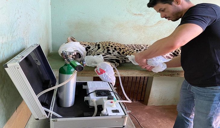 Ozonioterapia ajuda na recuperação de onça ferida em incêndio no Pantanal