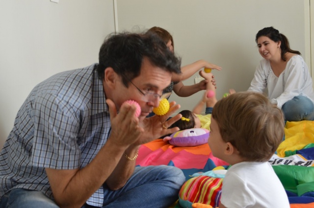Pelo neto, Djalma Flores Blans não pensa duas vezes. Ontem, sentou no chão com Augusto, de 2 anos, e encarou oficina de musicalização para bebês. “A música é fundamental, porque a criança está em constante desenvolvimento sensorial. Ela estimula a audição, coordenação motora, movimenta pé e mão. A criança tem que aprender a brincar”, afirmou.