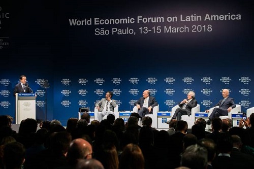 O executivo moderou um debate sobre quarta revolução industrial nesta quarta-feira (14) durante o Fórum Econômico Mundial para América Latina, em São Paulo.