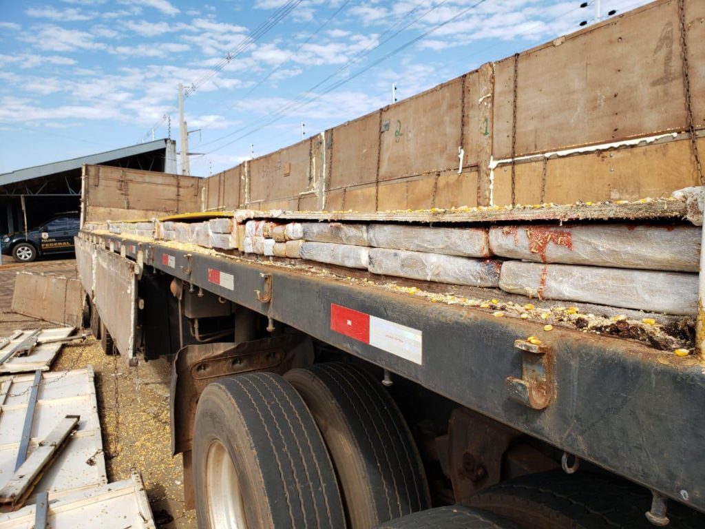 No raio-x foi possível identificar que embaixo da carga de milho trazida no semirreboque havia um fundo falso com aproximadamente 1.800 quilos de maconha.