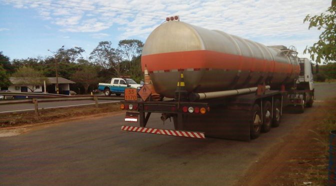 Campo Grande (MS) – Policiais Militares Ambientais do Grupamento de Porto Primavera, em Anaurilândia, realizavam fiscalização em bloqueio na rodovia MS 480, no km 18, nesse município e abordaram ontem (18) no final da tarde, um veículo acoplado a carreta do tipo tanque,transportando combustível (produto perigoso) ilegalmente. O veículo transportava 30 mil litros de etanol sem a licença ambiental que permitiria o transporte do produto perigoso.