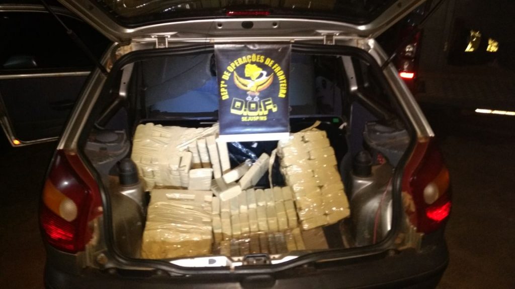 Durante fiscalização de rotina, policiais do Departamento de Operação de Fronteira (DOF), apreenderam 92 kg de maconha dentro de um veículo, ontem (24), na rodovia MS-295, em Iguatemi. Condutor de 34 anos foi preso por tráfico de drogas.