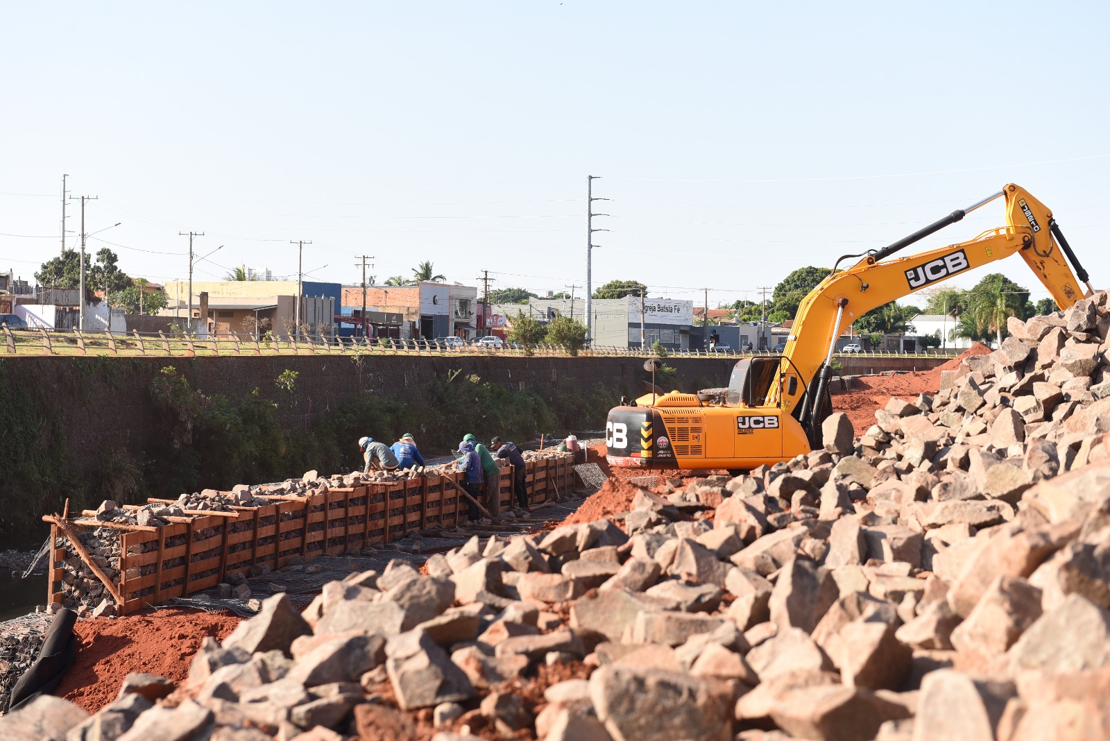 Está em execução a segunda etapa da obra de contenção de enchentes entre as ruas da Abolição e Bonsucesso, no sentido bairro/centro, investimento que ultrapassa R$ 20,9 milhões, recursos do Governo Federal e contrapartida do município. Com previsão de conclusão até fevereiro de 2026, a obra já está com 68% do cronograma cumprido.