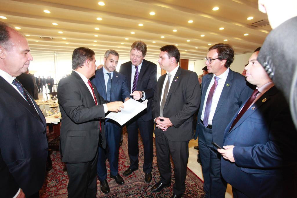 Senador Nelsinho Trad (PSD) também participou do encontro e entregou um ofício para o presidente do Paraguai, onde explica a importância da obra, fundamental para o Rota Bioceânica.