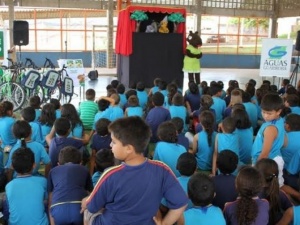 Cerca de 200 alunos do pré-escolar ao 5º ano assistiram, antes do concurso, a apresentação de teatro de bonecos com araras, peixes, tamanduá, onça pintada, macacos e capivara como personagens. A apresentação teve como protagonista a professora Guaribinha, mascote da empresa.