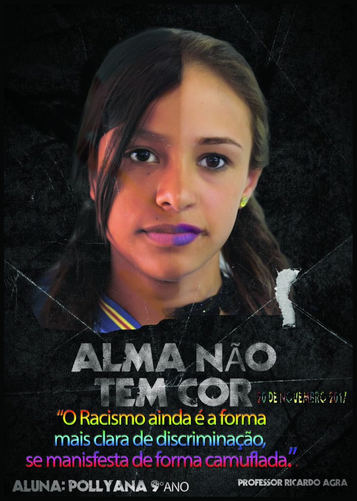 O projeto “Alma não tem cor” está ensinando a igualdade nas diferenças para os alunos da  Escola Municipal Barão do Rio Branco, do distrito de Rochedinho. A ação busca conscienizar sobre o Dia Nacional da Consciência Negra, lembrado no dia 20. Idealizado pelo professor Ricardo Agra, cartazes foram criados com fotos mistas de estudantes para mostrar que semelhança entre eles é maior do que podem notar.