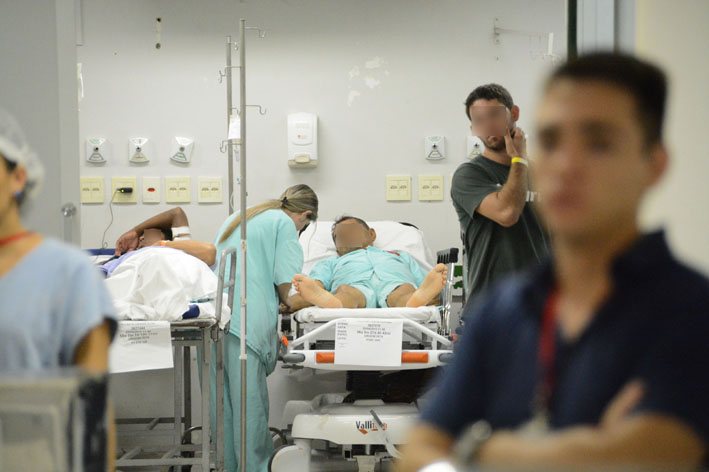 Durante a vistoria à Sala Vermelha do pronto-socorro foi constatado que haviam 14 pacientes, enquanto que a capacidade operacional instalada desse setor é de sete leitos.