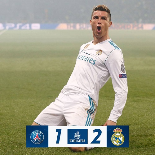 Gols: Cristiano Ronaldo, aos 5min, e Casemiro, aos 34min do segundo tempo (Real Madrid); Cavani, aos 25min do segundo tempo (PSG)