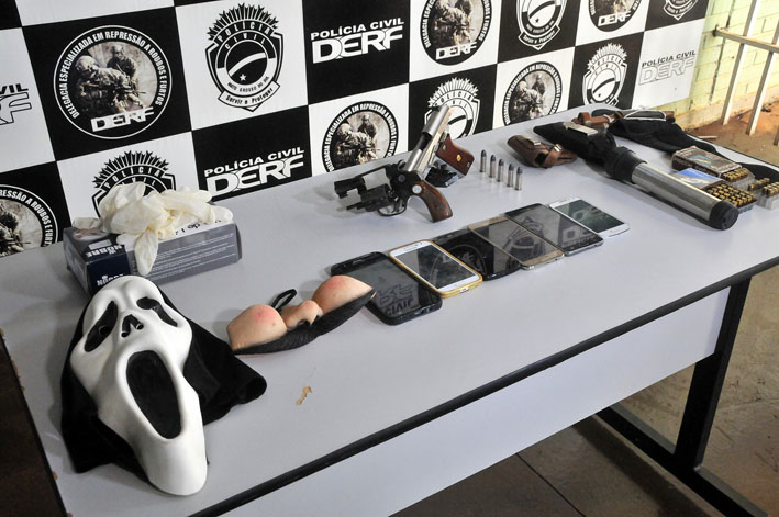 Os quatro integrantes foram presos e na residência foram apreendidos um revólver calibre .38 milímetros, uma pistola calibre .765, 40 munições, seis celulares, duas máscaras que eles utilizavam para esconder o rosto e o veículo roubado.