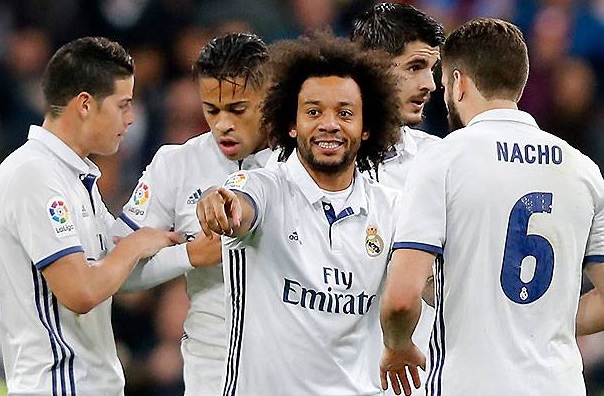 Cristiano Ronaldo marcou o primeiro gol da equipe da casa, de cabeça, no primeiro tempo. O jogador português também teve um pênalti defendido pelo goleiro brasileiro Diego Alves, do time visitante – é o terceiro pênalti batido por Cristiano Ronaldo que Alves defende. O lateral esquerdo Marcelo, já no fim da partida, garantiu o triunfo do time madrilenho. Parejo, de falta, marcou para os visitantes.