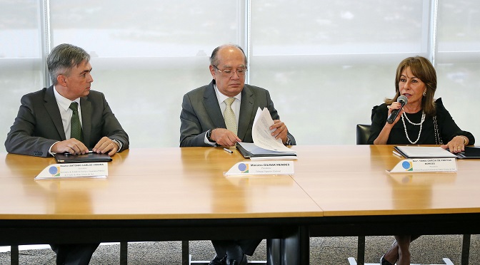 O convênio foi assinado na última sexta-feira pelo presidente do TSE, ministro Gilmar Mendes, pela presidente do TRE-MS, desembargadora Tânia Garcia de Freitas Borges, e pelo secretário de Estado de Justiça e Segurança Pública, Antonio Carlos Videira.