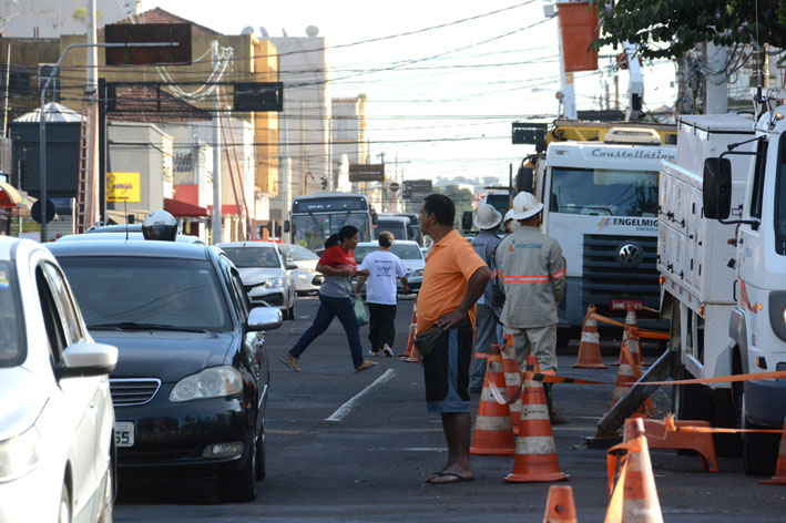 Para dar início às obras no trecho da Avenida Calógeras, cerca de 20 equipes da Concessionária de Energia Elétrica de Campo Grande (Energisa) chegaram no local às 4h30 para desligar todo o sistema elétrico da região. A pista estava parcialmente interditada com apenas três faixas livres.