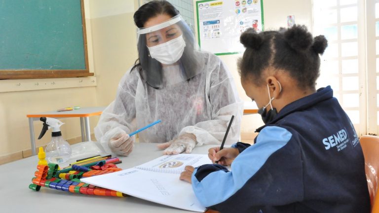 Para o retorno às aulas presenciais cada unidade escolar elaborou seu respectivo documento padrão de procedimentos/POPs, aprovado pelo setor competente da Secretaria Municipal de Educação/SEMED.