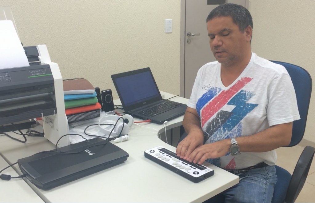 Trata-se de um equipamento com diferencial em relação aos similares. Nele pode ser gravado material digitado ou digitalizado cuja reprodução pode ser feita por meio de um cartão, não havendo necessidade de tê-lo plugado em um computador, o que significa autonomia, ou seja, qualquer lugar que se leve essa “linha” – e o cartão vai inserido, com os livros – é possível ter acesso ao braile imediatamente. Esse é o principal diferencial em referência a similares existentes no Estado – que são em pequena quantidade – é que para as outras é necessário ter um computador para reproduzir o texto digitado ou digitalizado, que estará gravado no HD.