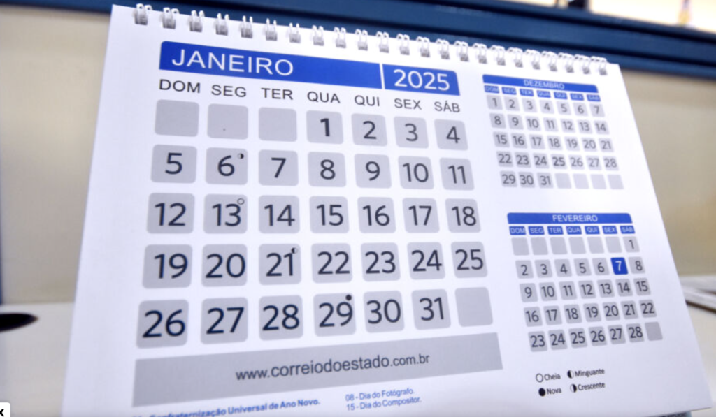 Vale lembrar que assim como em 2024, o feriado do Dia do Servidor Público, comemorado em 28 de outubro, será antecipado, sendo transferido para 21 de novembro.