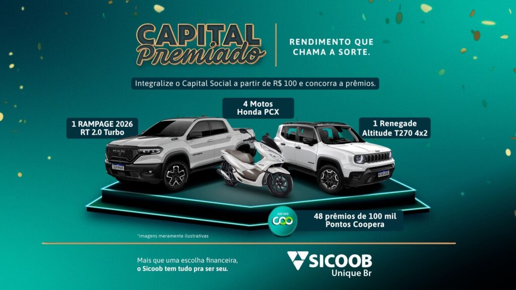 Investir no próprio futuro e ainda concorrer a grandes prêmios. Essa é a proposta da Campanha Capital Premiado – o rendimento que chama a sorte, lançada pelo Sicoob Unique Br para incentivar a integralização em Capital Social, fortalecendo a cooperativa e valorizando quem coopera.