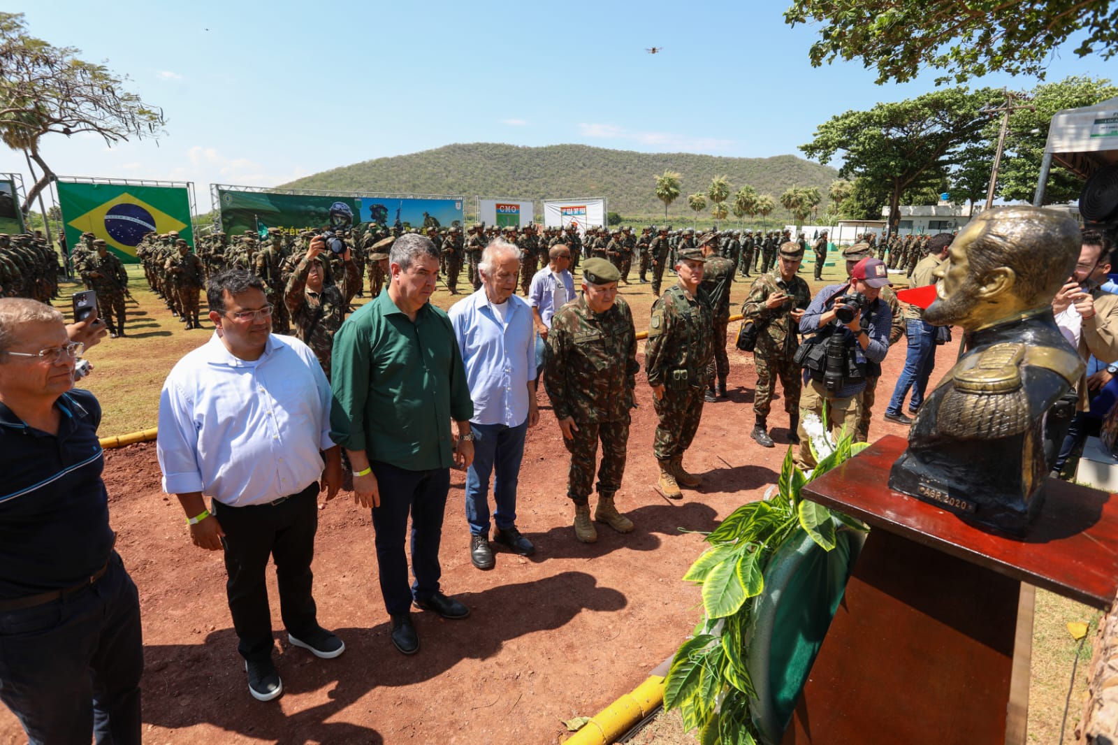 O governador Eduardo Riedel e o ministro da Defesa, José Múcio, além do comandante do Exército, general Tomás Paiva e o comandante do CMO (Comando Militar do Oeste), general Alcides de Faria, participaram da solenidade militar organizada pelo CMO, na base localizada no Pantanal – na região do Nabileque, em Corumbá.