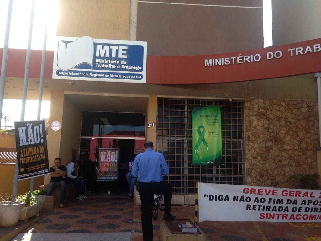 Sindicalistas e trabalhadores ocuparam na manhã de hoje, o Ministério do Trabalho e Emprego (MTE) na Rua 13 de Maio, centro de Campo Grande. O objetivo da manifestação é contra a reforma da previdência, e segundo os manifestantes, a ocupação do local é por tempo indeterminado.