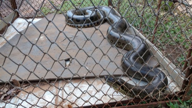 Sucuri de aproximadamente 3 metros foi capturada ontem (9) pelo Corpo de Bombeiros em terreno baldio, ao lado de madeireira localizada na Avenida Manoel Murtinho, em Anastácio. Outra sucuri, também de três metros, foi capturada na área urbana, em Corumbá, ns última terça-feira (4).