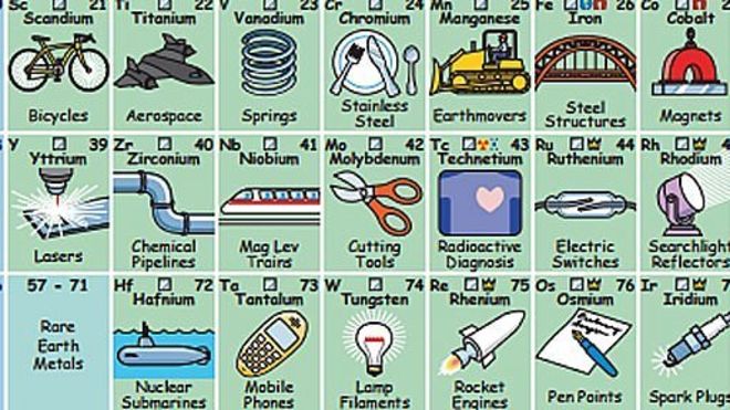 Image captionVocê sabia que o escândio é usado no alumínio das bicicletas?