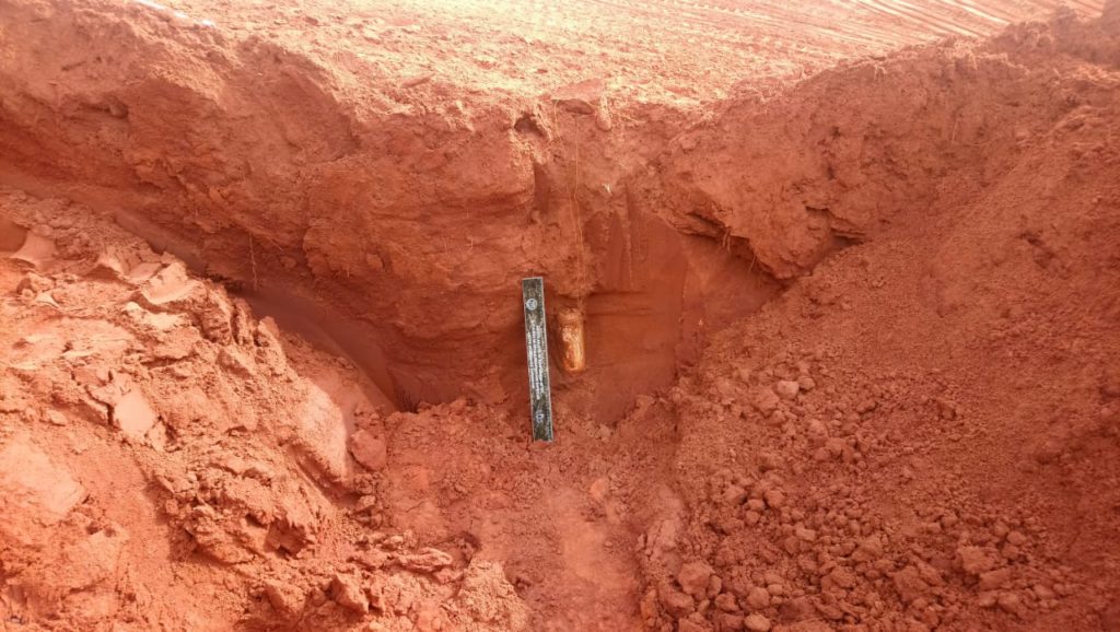 Trabalhadores encontraram um artefato explosivo durante escavação para obra de galeria de contenção de água pluvial, nessa quarta-feira (24), em área rural de Jateí. Equipe do Grupo de Bombas e Explosivos do Batalhão de Operações Policiais Especiais (Bope) da Polícia Militar foi acionada para fazer a detonação da bomba.